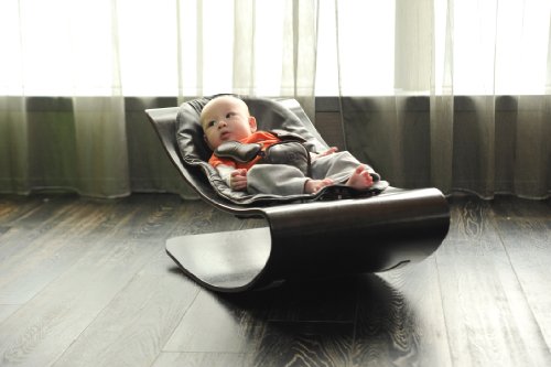 Curved, single piece frame with cosy seat;Formed in pressed wood;Smooth, self rocking motion;Adjustable 5 point padded safety harness;No assembly required