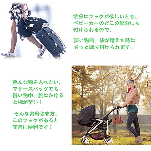 - ✅【耐荷重性に優れ】実験により、2個のフックを使用する時の耐荷重が20kgに達することができま す。ベビーカーが転覆を防ぐために、毎フックのぶら下げ物は3kgを超えないとお勧めします。