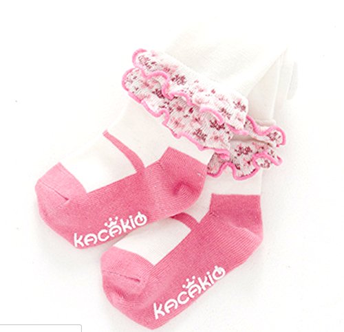 rrsou 女の子 ベビー タイツ フリル フェイク 靴 靴下 (1〜3歳, ピンク)