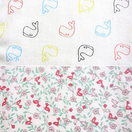 - かわいらしい小鳥&花柄と、くじら柄のガーゼハンカチ