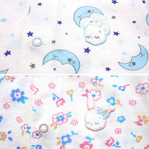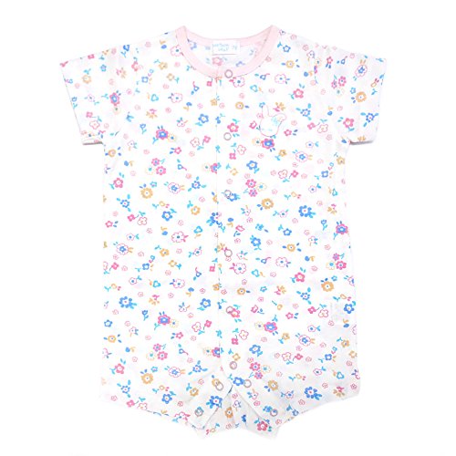 - やさしい色合いの、月と星柄&花柄の半袖カバーオール