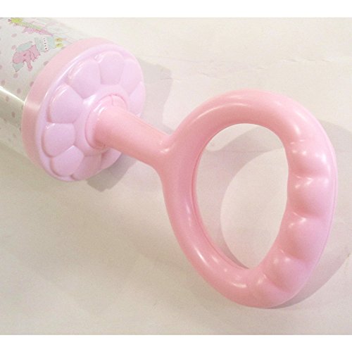やさしい音色を奏でるラトル♪ドット柄ベースに、クマさんやウサギさんが汽車に乗った、かわいい汽車柄。