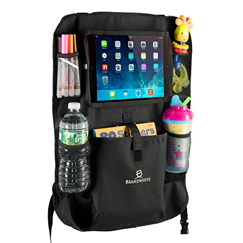 Car Back Seat Organizer for Kids by brandwhite-touch画面ポケットfor Android & iOSタブレット最大9.5 " – 簡単にフィット、多くのポーチ、安全なiPad &タブレットホルダー、耐久性素材、SmootherファミリTrips