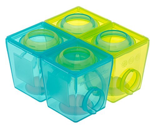 BROTHER MAX? Set of 4, 5.74oz Weaning Baby Food Freezer Storage Containers that Click Together for Easy Filling with Flexible, Easy Push-through Silicone Bases and Leak-proof Hinged Lids. (Blue/Green) by Brother Max