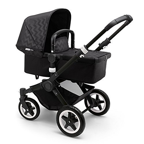 Bugaboo sets the tone with the brand-new, minimalist black-on-black design that is ever so stylish and set to catch the attention of the fashion-forward crowd., A timeless chevron design meets the understated sleekness of black-on-black in a new, limited-edition; the Intense Black: Bugaboo Shiny Chevron Collection. Bound to be an instant classic, this collection combines matte and shiny black in a chic zigzag design., The set consists of one sun canopy and one apron, Canvas fabric offers sun protection rate of UPF 50+, Machine washable