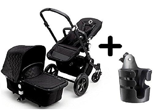 Bugaboo Cameleon3 Stroller 2015, LIMITED EDITION Intense Black with Shiny Chevron Seat Fabric + Bugaboo Cup Holder by Bugaboo