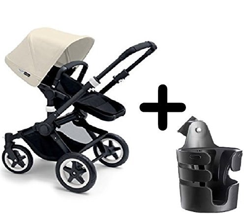 Bugaboo 2015 Buffalo Stroller Complete Set in Black/Off-White Canvas Fabric Set + Bugaboo Cup Holder by Bugaboo