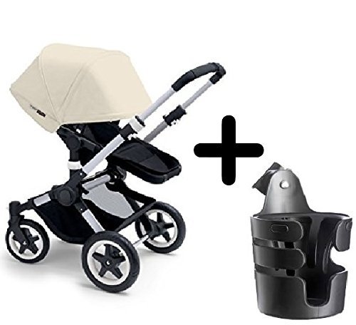 Bugaboo 2015 Buffalo Stroller Complete Set in Aluminum/Off-White Canvas Fabric Set + Bugaboo Cup Holder by Bugaboo