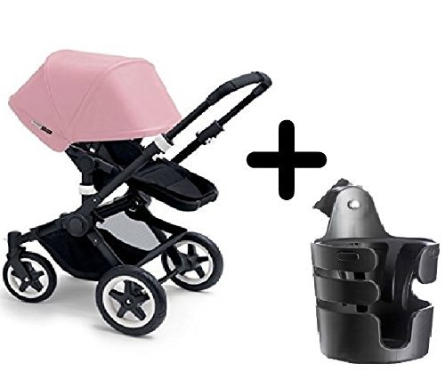 Bugaboo 2015 Buffalo Stroller Complete Set in Black/Soft Pink Canvas Fabric Set + Bugaboo Cup Holder by Bugaboo