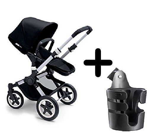 Bugaboo 2015 Buffalo Stroller Complete Set in Aluminum/Black Canvas Fabric Set + Bugaboo Cup Holder by Bugaboo