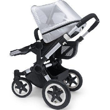 Bugaboo Donkeyのサンキャノピー 風通し良く日差しを遮る優れものです。 肌の弱い赤ちゃんには、日差しは大敵 イタリアから輸入したポリエステル生地は、UPF 50+で紫外線をしっかりカット。 また色がシルバーなので涼しげな印象です。 キャノピーは伸縮するので、日差しの角度に合わせて赤ちゃんを守ることができますね。