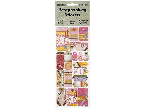Make your favorite memories, scrapbooks and keepsakes extra special with these charming Pink Sewing Fun Decorative Tags Scrapbooking Stickers featuring colorful tags in various designs and sizes with printed fabric textures and heart, woven trim, button, paper clip and floral accents. Add unique designs to gift bags, greeting cards, crafts and more. Includes one 9.5" x 4" sheet. Acid/lignin-free. Archival quality. Comes packaged in a hanging poly bag.