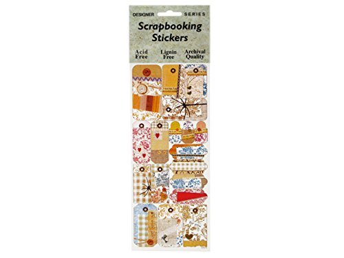 Make your favorite memories, scrapbooks and keepsakes extra special with these charming Country Picnic Decorative Tags Scrapbooking Stickers featuring colorful tags in various designs and sizes with printed fabric textures and floral, heart, lace and button accents. Add unique designs to gift bags, greeting cards, crafts and more. Includes one 9.5" x 4" sheet. Acid/lignin-free. Archival quality. Comes packaged in a hanging poly bag.