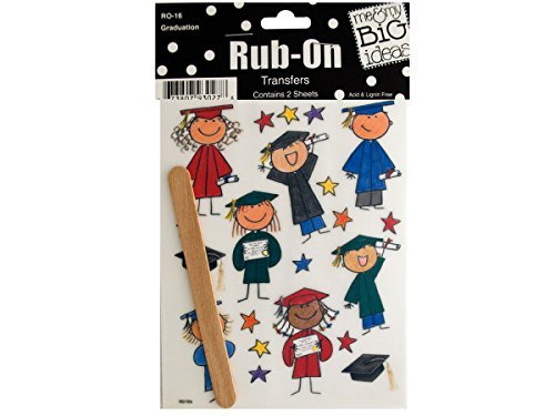 Perfect for scrapbooking, card making or any craft, these fun Graduation Rub-On Transfers feature various graduation-related phrases, words and graduates. Includes two sheets of transfers and an applicator stick. Transfers can be used on paper, wood, fabric and other surfaces. Acid and lignin free. Comes packaged in a poly bag with a header card. Package measures approximately 8" x 4.5".