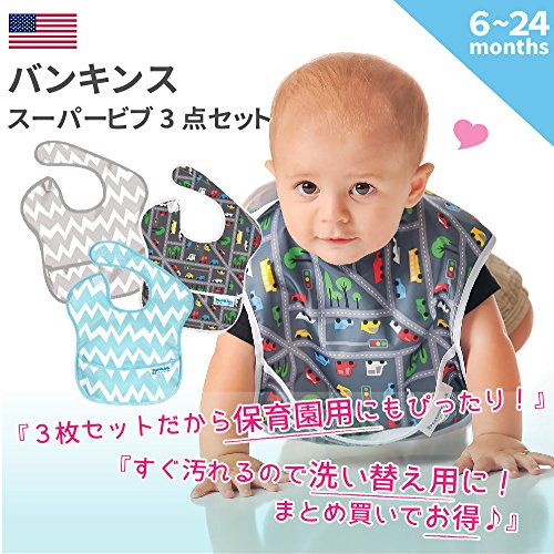 バンキンス 油が落ちるスタイ3点セット【日本正規品】スーパービブ 柔らかくて軽量 洗濯機で洗えてすぐ乾く お食事用防水ビブ 6~24ヶ月 Boy Assorted S3-B900