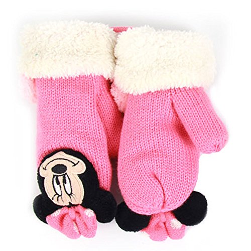 ミッキーマウスの ミニーマウス 冬 ベビー キッズ 幼児 手袋 子供手袋 毛糸 ミトン ニットグローブ ニット 手袋 ミトン グローブ 防寒 防風 保温効果 クリスマスプレゼント ギフト (2〜5歳)6色 [並行輸入品] (Pink)