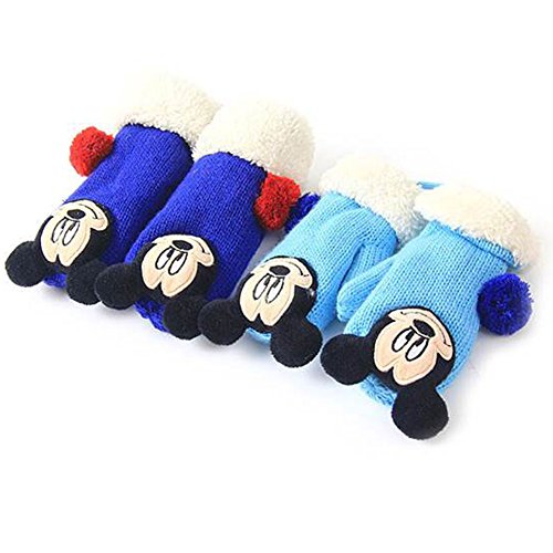 ミッキーマウスの ミニーマウス 冬 ベビー キッズ 幼児 手袋 子供手袋 毛糸 ミトン ニットグローブ ニット 手袋 ミトン グローブ 防寒 防風 保温効果 クリスマスプレゼント ギフト (2〜5歳)6色 [並行輸入品] (Sky)