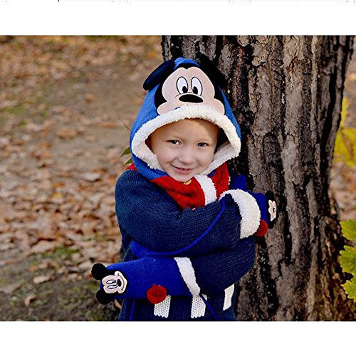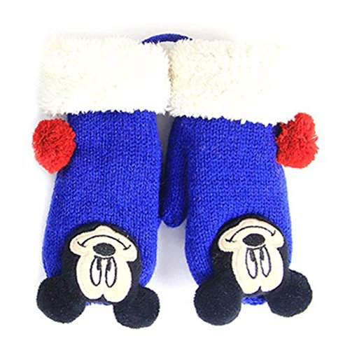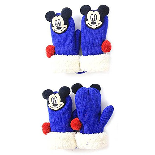 ミッキーマウスの ミニーマウス 冬 ベビー キッズ 幼児 手袋 子供手袋 毛糸 ミトン ニットグローブ ニット 手袋 ミトン グローブ 防寒 防風 保温効果 クリスマスプレゼント ギフト (2〜5歳)6色 [並行輸入品] (Blue)