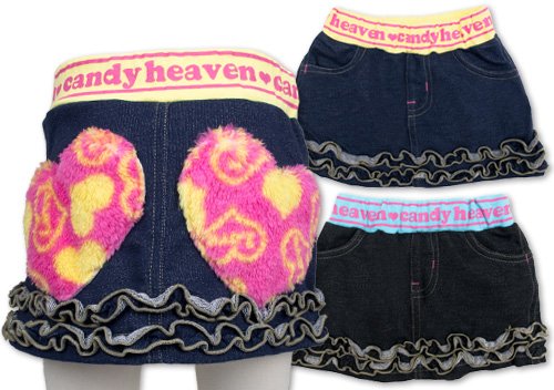 (キャンディヘブン)candy heaven 【candy heaven】 キャンディヘブン デニムニット ハートフリース フリル付きスカート 80cm/90cm/95cm 95 クリーム(本体ネイビー)