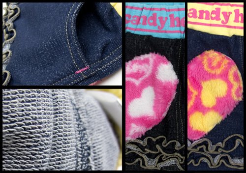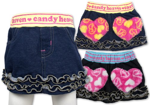 キャンディヘブンのおしりについたハートがCUTEなデニムニットフリル付きスカートです 見た目はデニムのようだけど、ニットならではの風合いストレッチ性を兼ねたデニムニット使用。 ウエストリブ部分にはロゴ入り☆ 両サイドにポケット付き おしりに縫われたハートの形をしたボアフリースがとってもCUTEなのも見逃せない☆ お色はサックス(本体ブラック)とクリーム(本体ネイビー)の2色展開です サイズ: 80/90/95 カラー: サックス(本体ブラック)/クリーム(本体ネイビー) 素材: 本体・ポリエステル65% 綿35% リブ部分・綿95% ポリウレタン5% ボア部分・ポリエステル100% 原産国: 中国