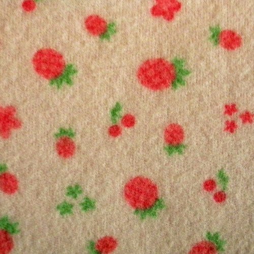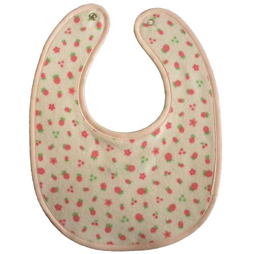 - スタイ本体 ①フルーツ柄面(起毛加工) 綿100% ②無地ロゴ刺繍面 綿100%