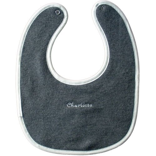 - スタイ本体 ①先染めボーダー(淡グレー/濃グレー)【2配色タイプ】【ランダムボーダーデザイン】 綿100% ②無地ロゴ刺繍面 生地グレー系色 綿100%