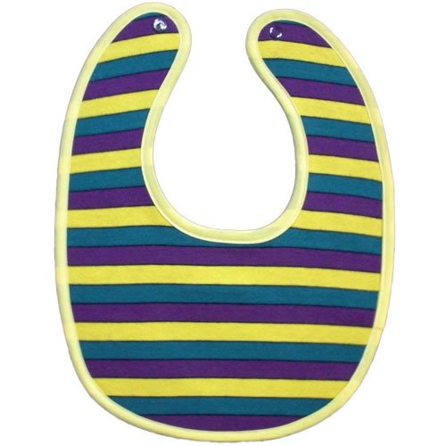 - スタイ本体 ①先染めボーダー(紫/黒/黄/緑)【4配色タイプ】 綿100% ②無地ロゴ刺繍面 生地茶系色 綿100%