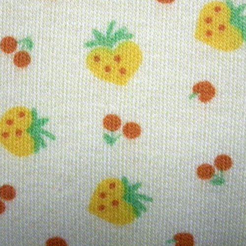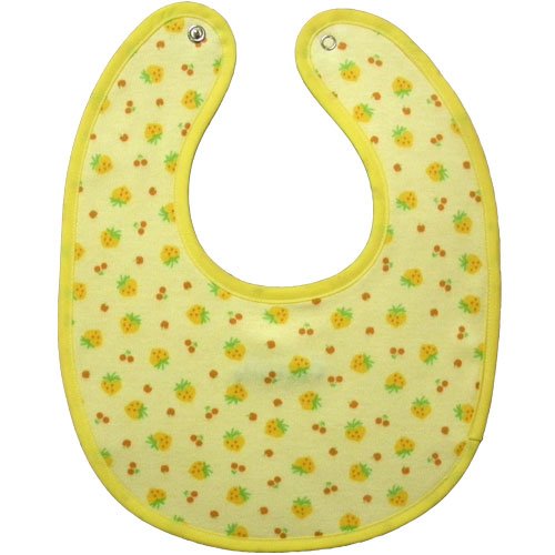 - スタイ本体 ①フルーツ柄面(黄色系) 綿100% ②無地ロゴ刺繍面 綿100%