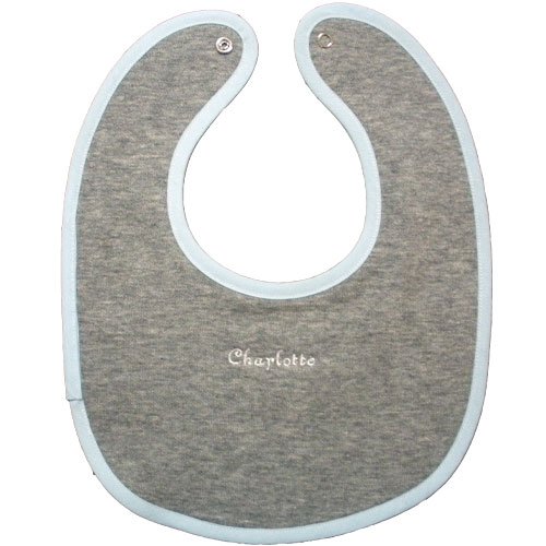 - スタイ本体 ①クレープ素材 綿100% ②無地ロゴ刺繍面 綿ニット生地グレー系色 綿100%