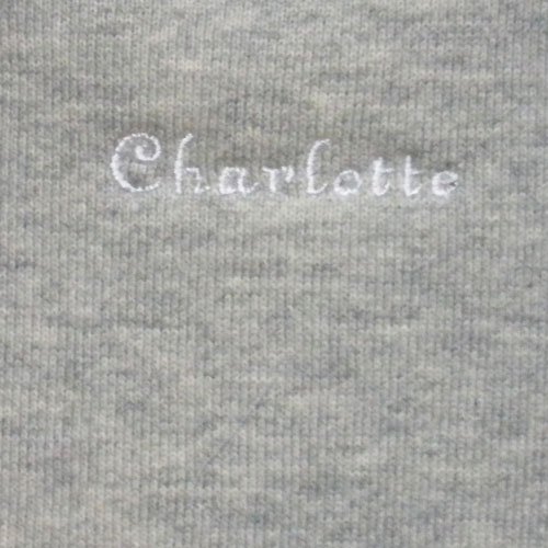 - スタイ本体 ①オーガニックコットン面(無地グレー杢系色) 綿100% ②無地ロゴ刺繍面 (グレー杢系色) 綿100%