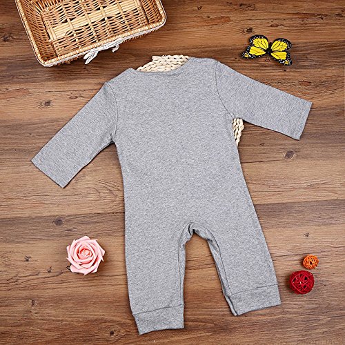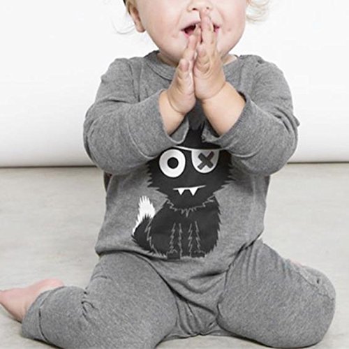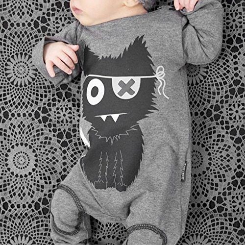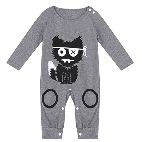 AMAA ベビー パジャマ 前開き ロンパース 怪獣柄 綿 長袖 70 80 90 100 0-24月に (グレー, 70cm)