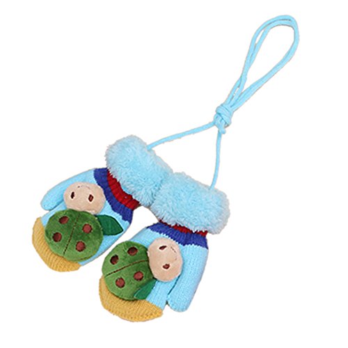 AMAA 子供 グローブ ニット ベビー 手袋 紐付き 厚手 裏地フリース ビートル テントウムシ 女の子 男の子 カラフル 冬 防寒 保温 6月-4歳