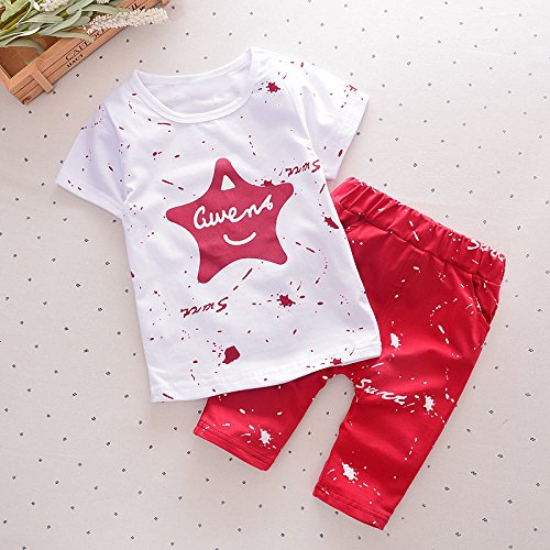 AMAA 子供服 Tシャツ 男の子 半袖 五芒星柄 丸丸襟 Tシャツ パンツ 上下セット ショートパンツ ベビー 男の子 夏 可愛 (グレー, 80)