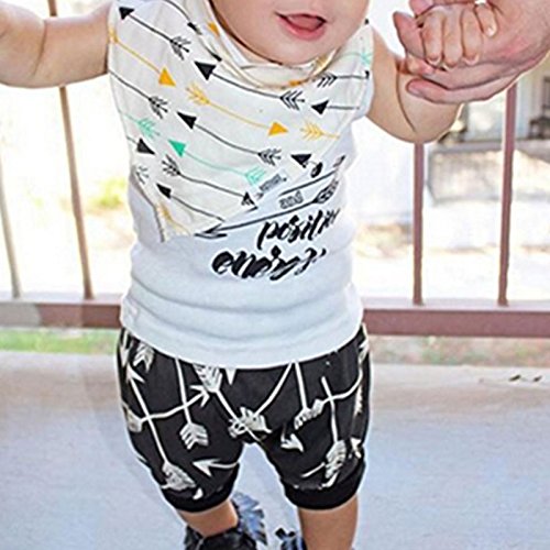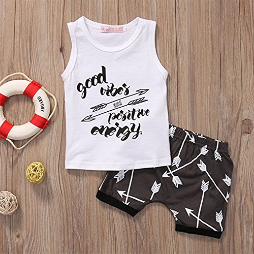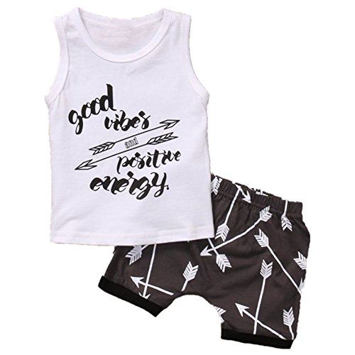 AMAA ベビー服 男の子 子供服 2点セット タンクトップ+パンツ ノースリーブ 英字 矢柄 トップス 可愛い ボーイズ 春/夏 運動会 赤ちゃん セットアップ 通学通園 普段着 旅行 出産祝い 誕生日 子供の日 プレゼント 70cm-100cm (100cm)