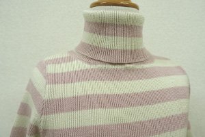 ストレッチのよくきいたボーダーハイネックリブセーター。やわらかい肌触りで着心地バツグンです。重ね着には欠かせない必須アイテムです。