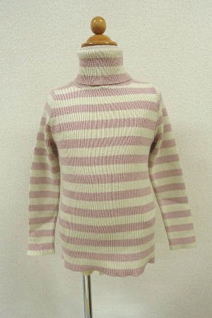 (シアンシアン)chien chien ボーダーハイネックリブセーター140929 80 ピンク