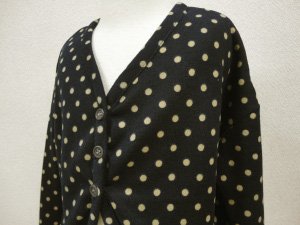エステルドットプリントのカーディガン。ドットのカーディガンは、センスのよさが光ります。優しい肌触りで着心地満点です。