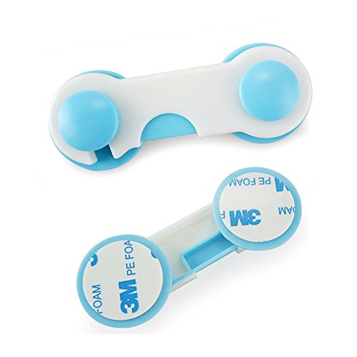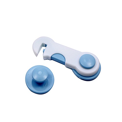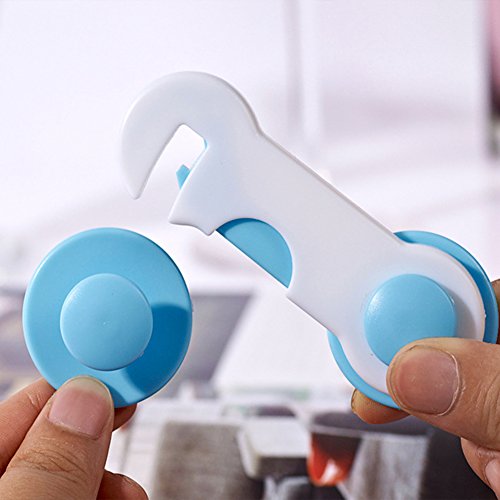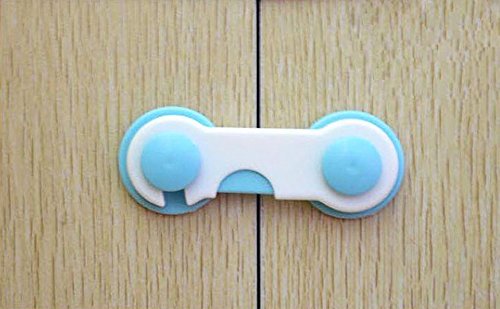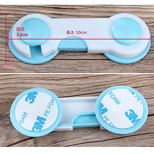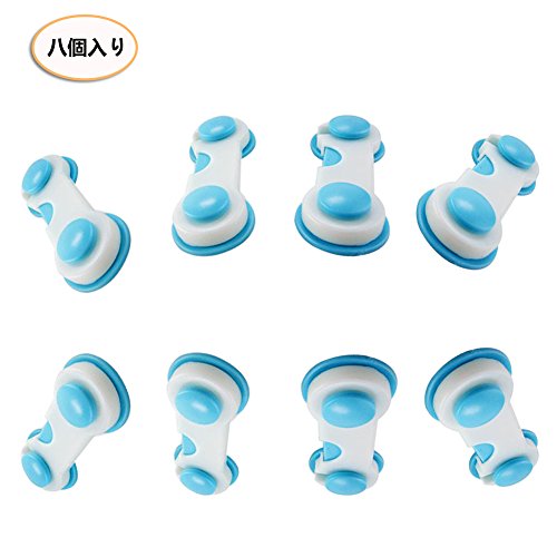 安全ロック キッチン 食器棚 引き出し イタズラ防止 回転式のワンタッチ 地震対策 いたずら 防止セット ホワイト青い