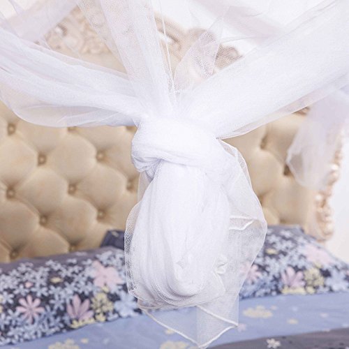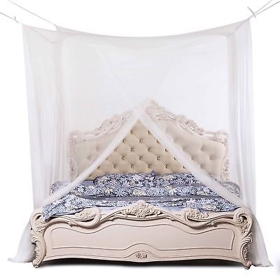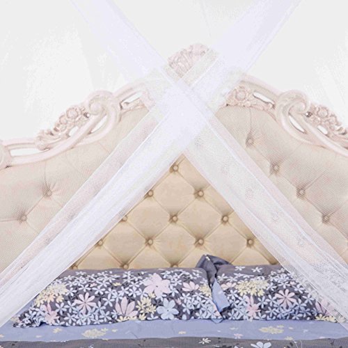4コーナーポストベッドキャノピーMosquito Netクイーンサイズホワイトレース寝具Mosquito Net