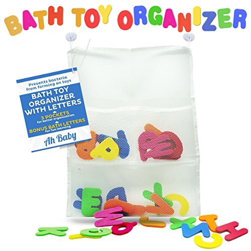 Ah Baby Bathtub Letters with Bath Toy Organizer Bag for Neat Bathrooms and Smart Kids [並行輸入品]