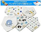 (Fun Market) 三角 バンダナ 型 コットン スタイ エプロン 3枚 セット 男の子 女の子 (B6.ぞう&きりん6枚+グッズ付きelgfl6, バンダナ型)