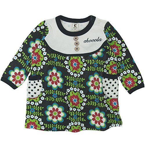 【秋冬物】 chocola(ショコラ) ガーゼ天竺ヨーク切替総柄長袖ワンピース 110cm /クロ NO.CH-1511-58025