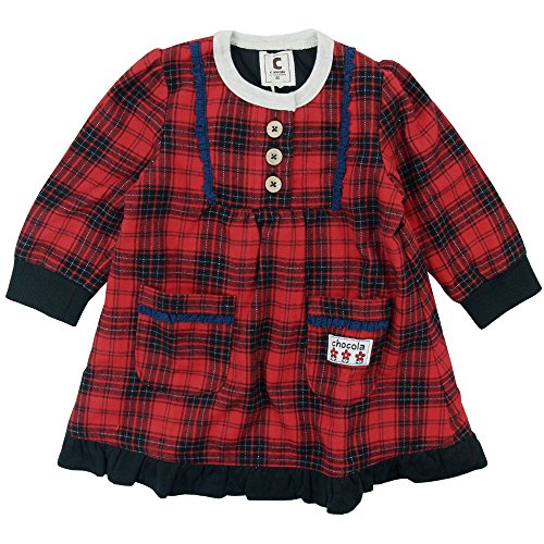 【秋冬物】 chocola(ショコラ) 布帛×ガーゼ天竺格子柄長袖ワンピース 110cm/アカ系 NO.CH-1511-53031