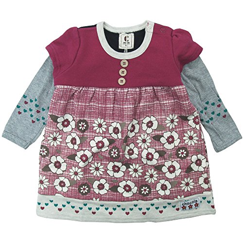 【H27年秋冬物】 chocola(ショコラ) 裏毛+天竺花柄使いワンピース 130cm/ワイン NO.CH-1511-53065