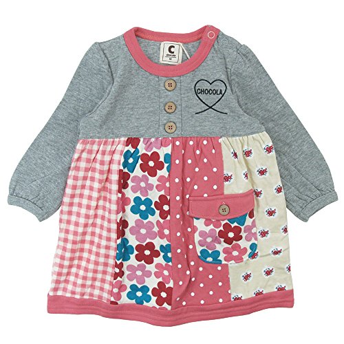 【秋冬物】 chocola(ショコラ) ガーゼ天竺パッチワーク風ワンピース 80cm /杢グレー NO.CH-1511-53026