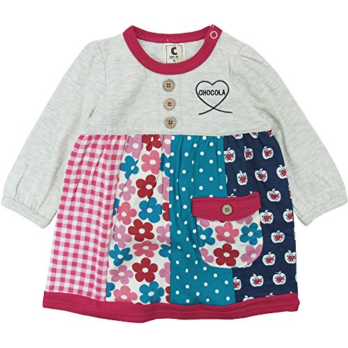 【秋冬物】 chocola(ショコラ) ガーゼ天竺パッチワーク風ワンピース 95cm /オートミール NO.CH-1511-53026