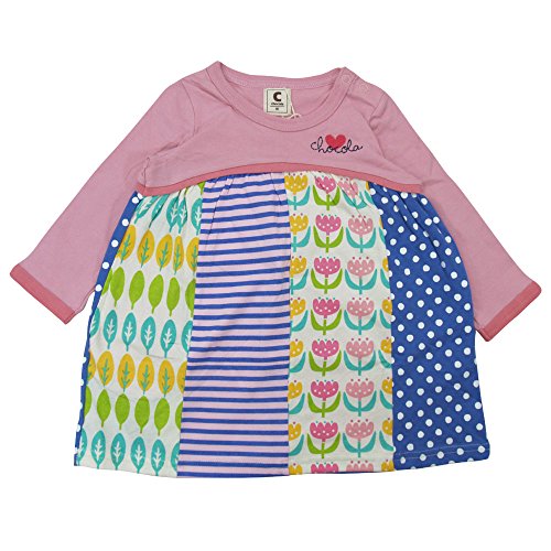 【春物】 chocola(ショコラ) 天竺花柄使い長袖ワンピース 90cm/コーラルピンク NO.CH-1621-53055