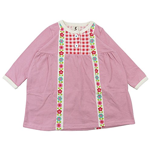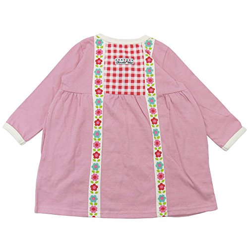 【春物】 chocola(ショコラ) 天竺花柄テープ使い長袖ワンピース 100cm/ピンク NO.CH-1621-58054