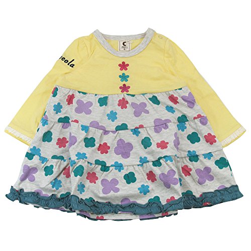 【春物】 chocola(ショコラ) 天竺花柄使い長袖ワンピース 100cm/イエロー NO.CH-1621-53055