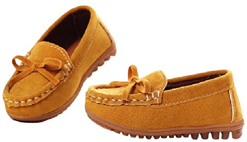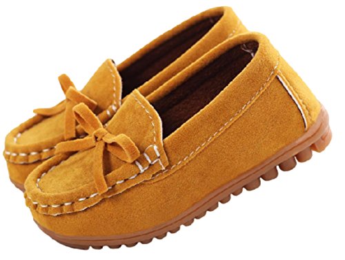 キッズ シューズ 子供 くつ スエード ローファー 靴底 滑り止め 仕様 (黄色, 14.5cm)